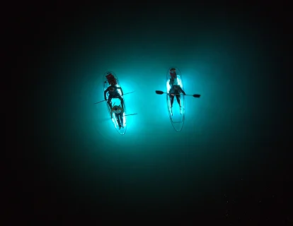 A unique evening experience combining sunset views, glowing kayaks, and calm paddling on Kings Bay